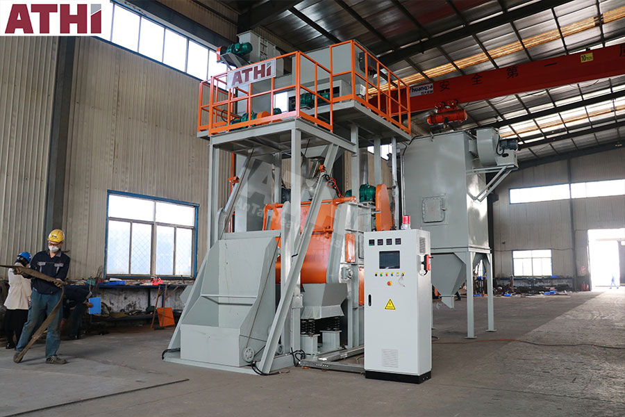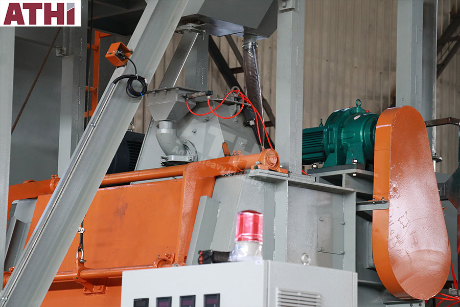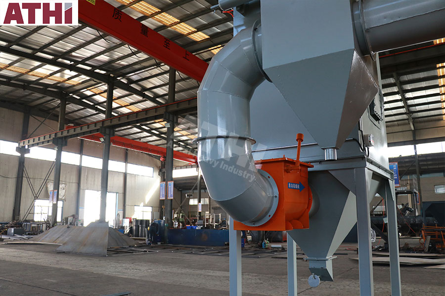 该机主要由清理室、橡胶履带、吊门、抛丸器、加料机构、提升机、螺旋输送器、分离系统、除尘系统、电器系统等部分组成。