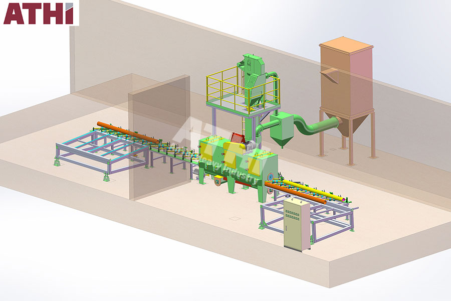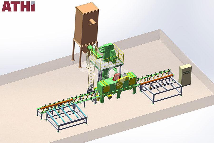 该机适用于钢管的表面清理,去除表面氧化皮、焊渣等杂物,呈现金属光泽,并增加表面积,有利于工件的涂装。广泛应用于石化、钢铁、城市集中供热、给排水等行业。
